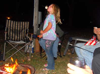 | Capt'n of the S'mores (Dave Bauerle) was teaching one of his grand-daughters the fine art of S'more make'n. |